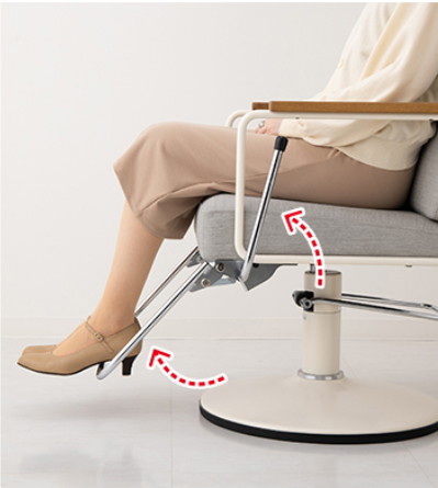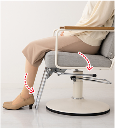 椅子横にレバーが付いていてステップ(足置き)を上げたり下げたりできるタイプに変更しました。